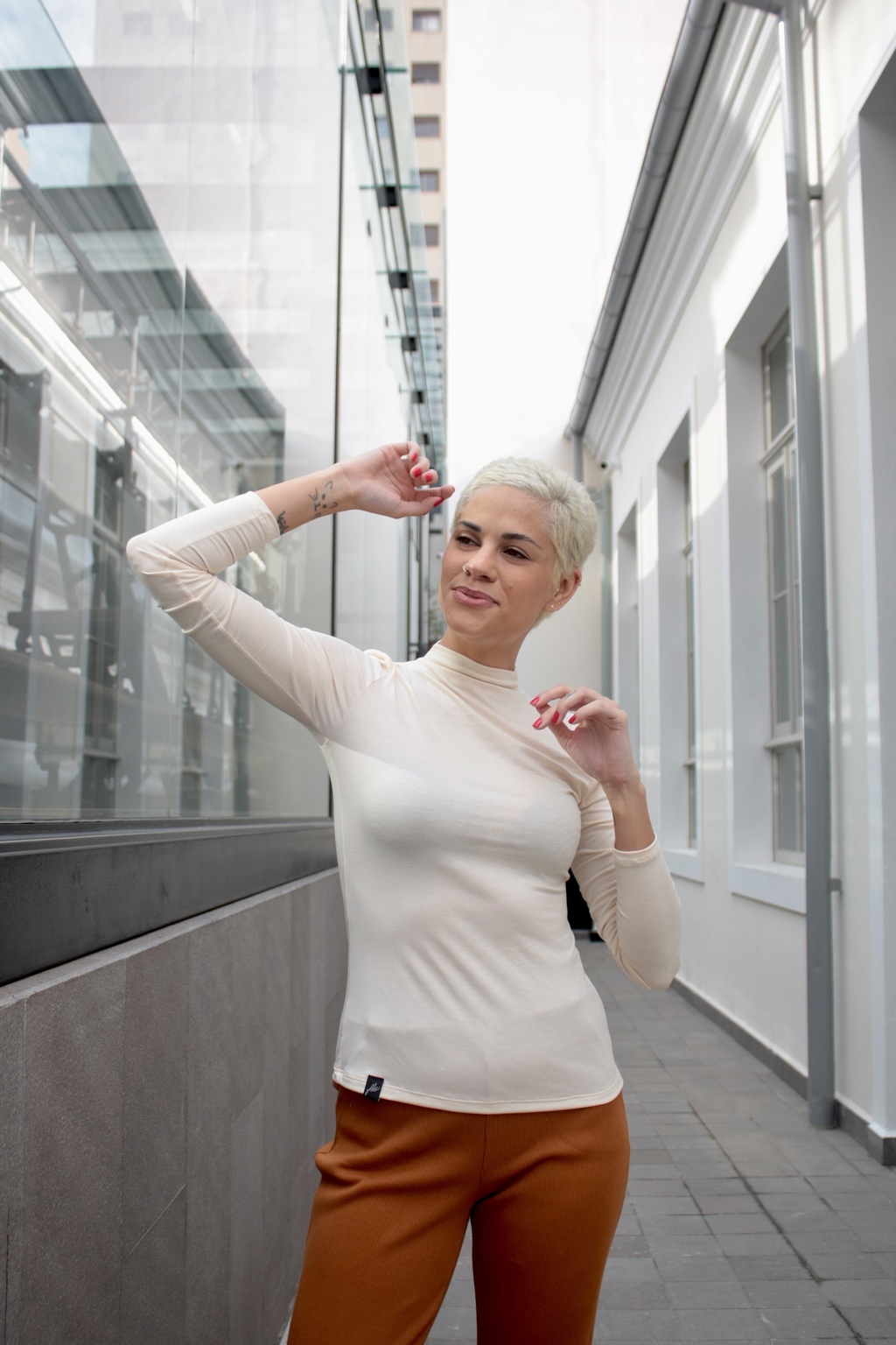 A Blusa Básica Gola Alta da Flô Comfortwear é a peça essencial para seu guarda-roupa. Confeccionada em malha viscolycra, apresenta uma modelagem mais justa que valoriza o corpo e uma gola alta que adiciona um toque de elegância.